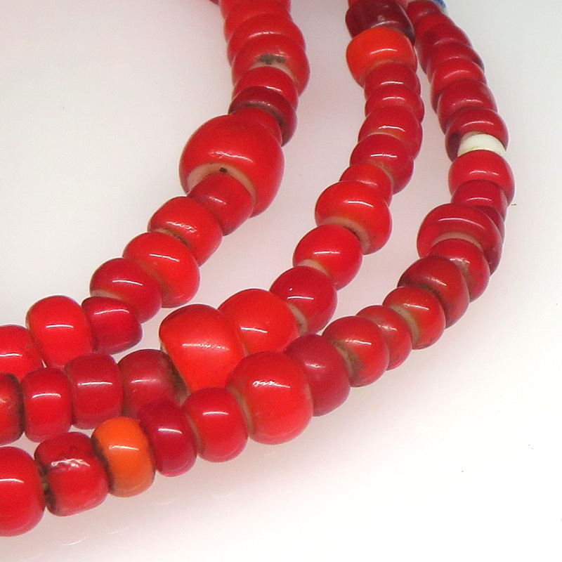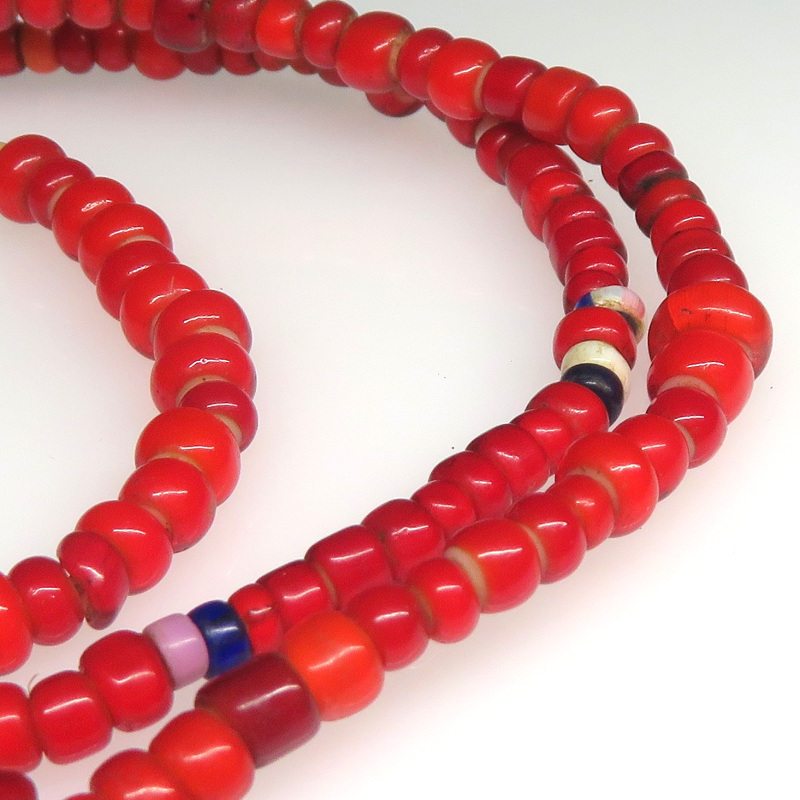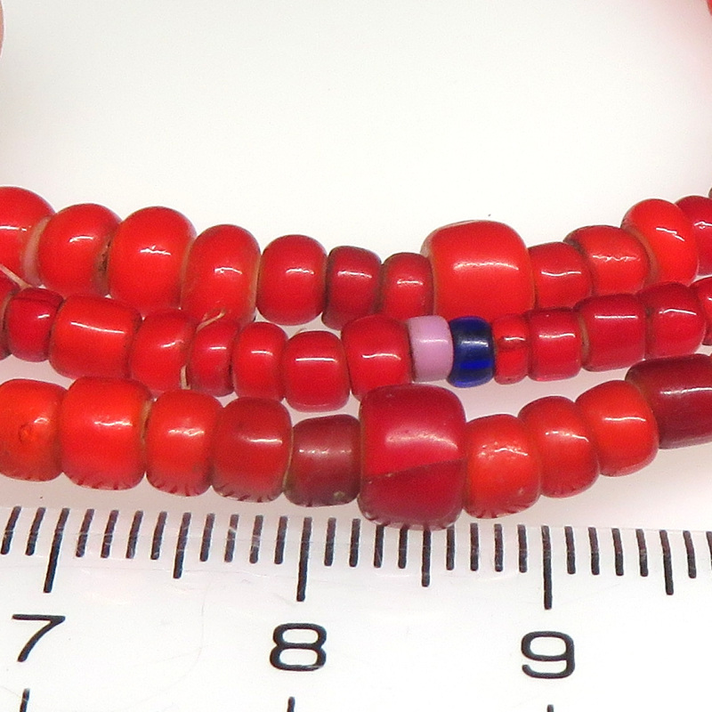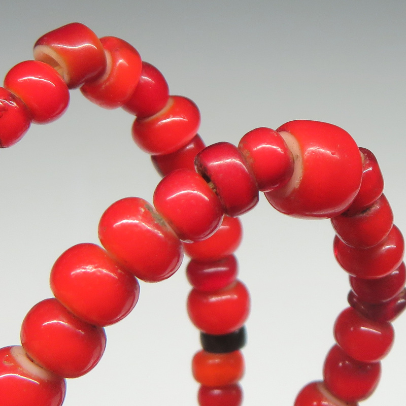 | 説明 | ヴェネチア製アフリカ渡り。 果実のように艶やかで美しい色合いのホワイトハーツ連です。 深い赤や可愛いシードビーズ、カンネッテなどほかの色合いの粒も混じっています。 使い込んで人の脂がなじむと、より美しい色合いになることでしょう。 粒は一粒一粒、色・サイズ・形に個性があります。 |