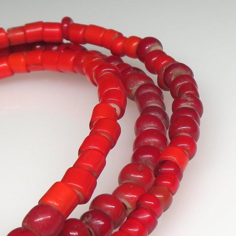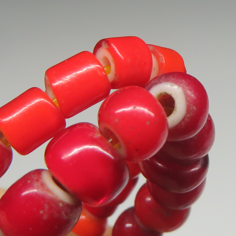 写真を撮るとどうしても光が入って明るめに写ってしまいます。実物はもっと深い赤です。 使い込んで人の脂がなじむと、より美しい色合いになることでしょう。 |