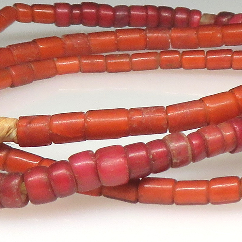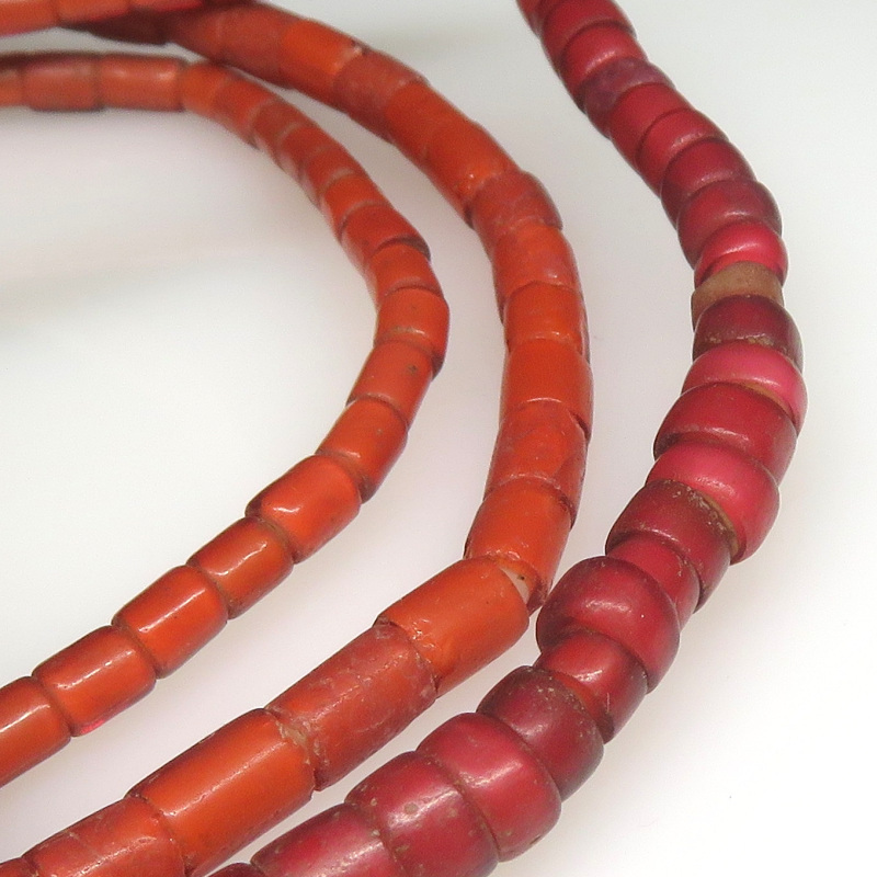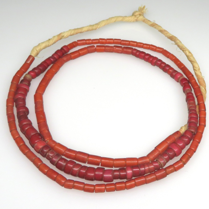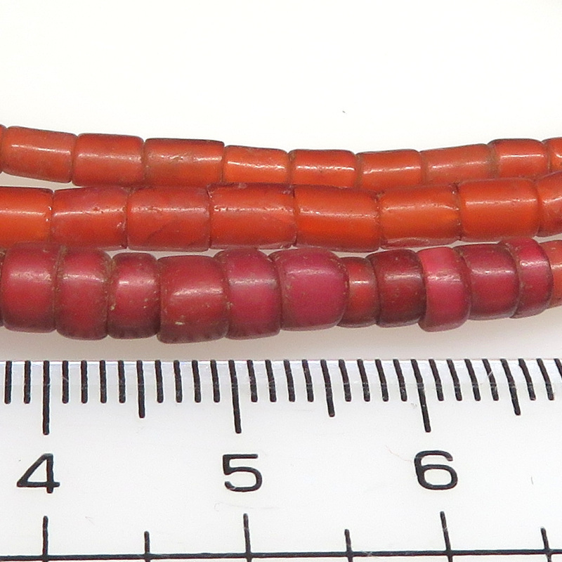 風格と気品があります。 チューブ型と金赤粒のミックス連。 画像よりももう少し深い色目です。 粒は一粒一粒、色・サイズ・形に個性がありますす。