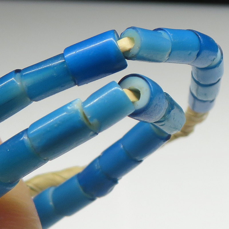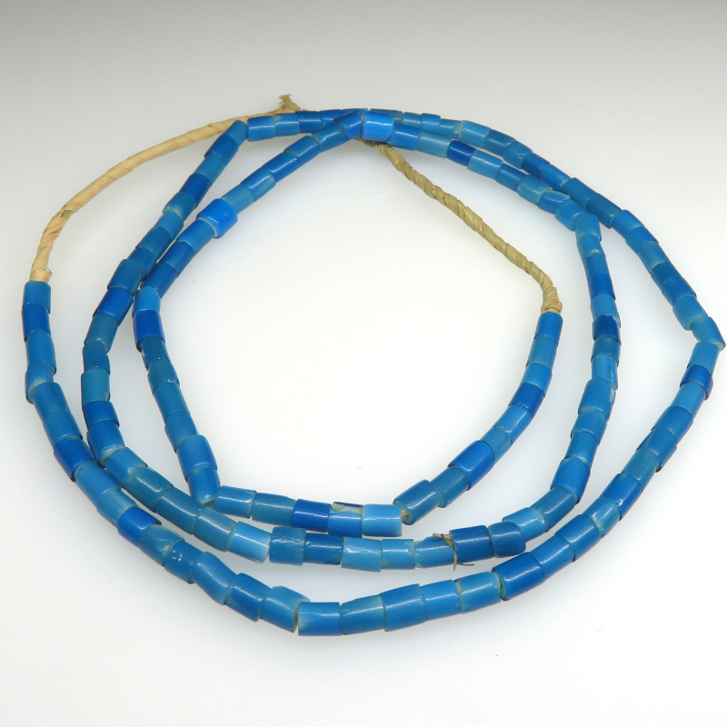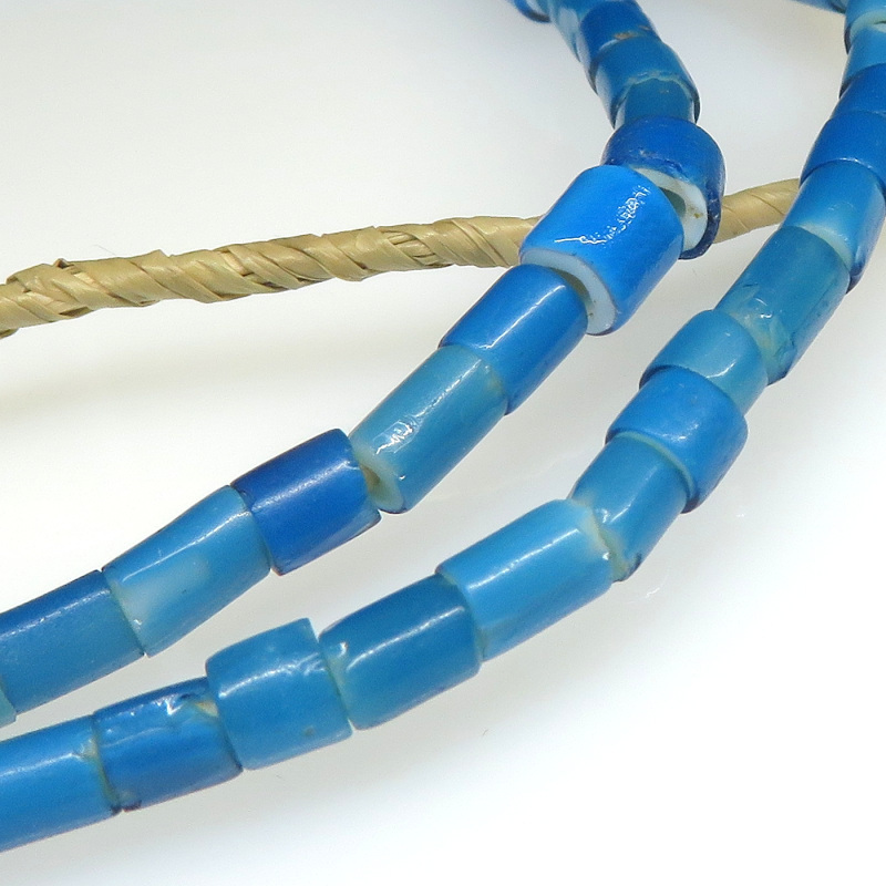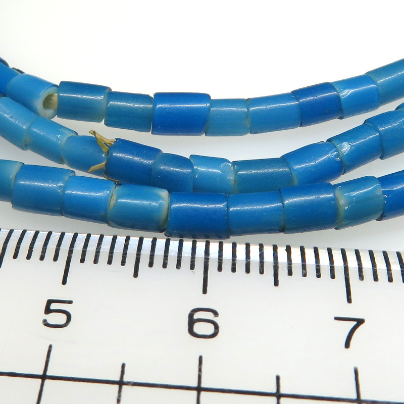 珍しいタイプの青。深い深海のブルーに空の明るいブルーが混じっています。 色のグラデーションが面白い。 粒は一粒一粒、色・サイズ・形に個性があります。 |