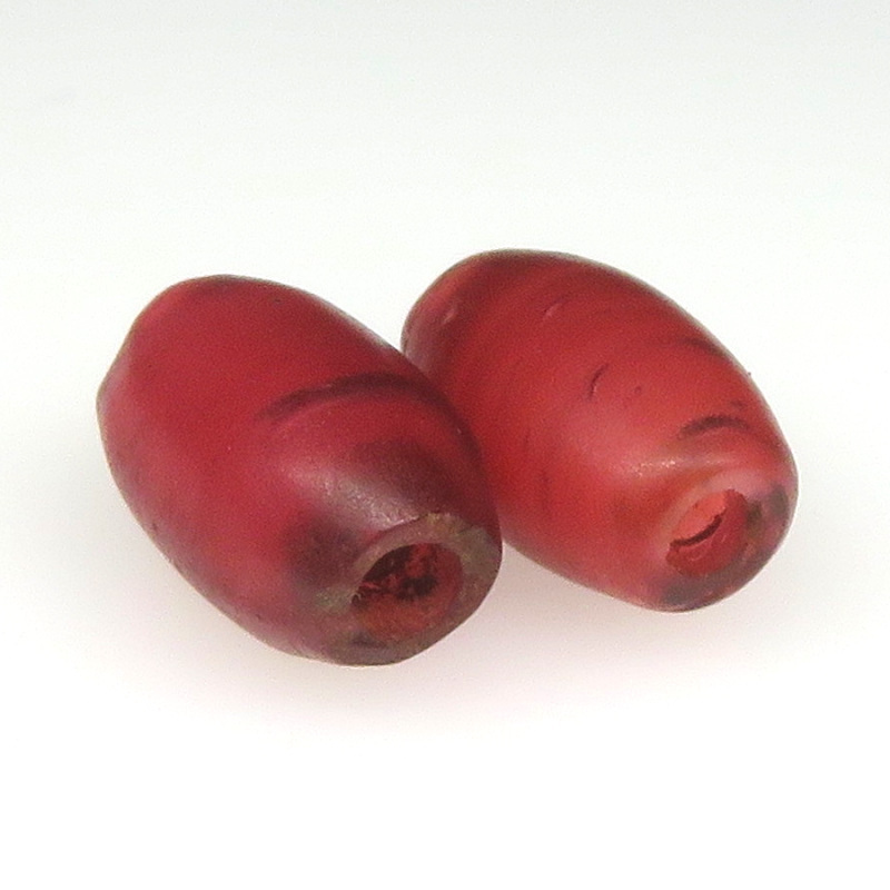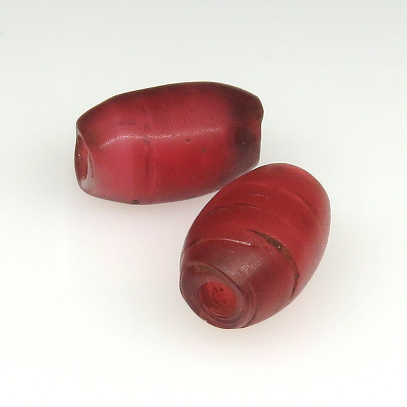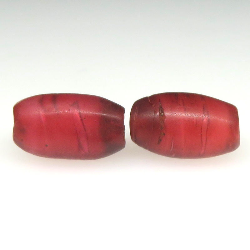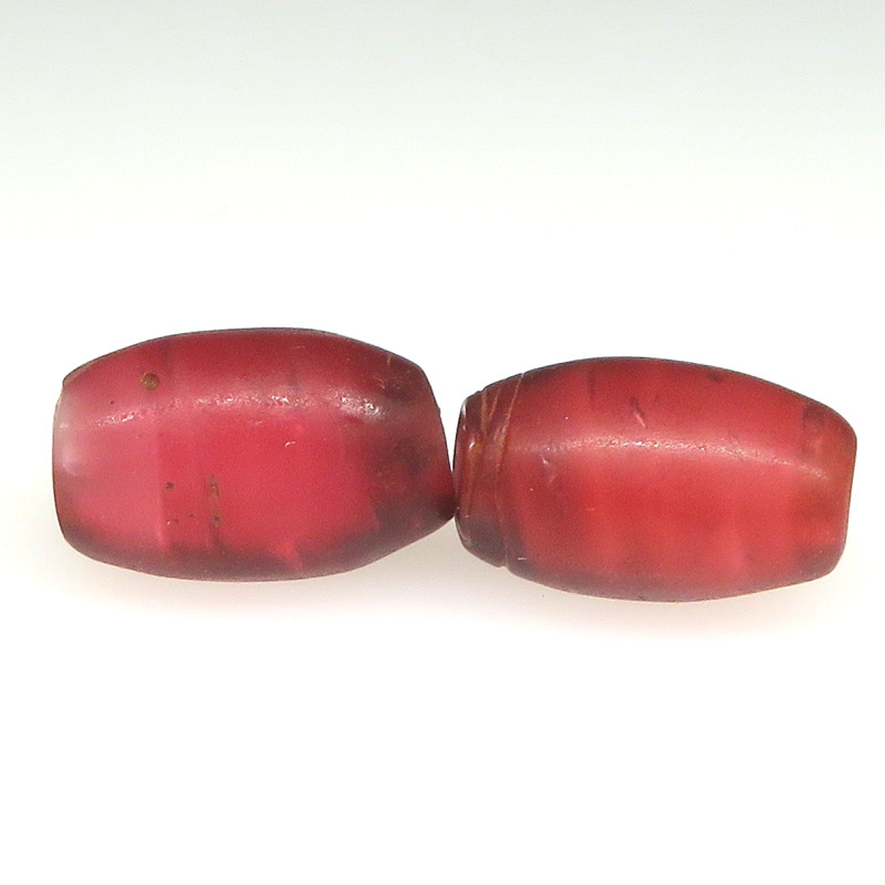 | 説明 | ヴェネチア製アフリカ渡り。 希少な紡錘型のホワイトハーツです。 深いワインレッド。内側の白が透けて美しい。 似たような形・色のものを二個セットにしました。 |