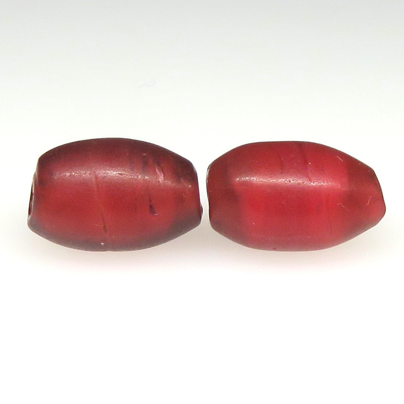 | 説明 | ヴェネチア製アフリカ渡り。 希少な紡錘型のホワイトハーツです。 深いワインレッド。内側の白が透けて美しい。 似たような形・色のものを二個セットにしました。 |