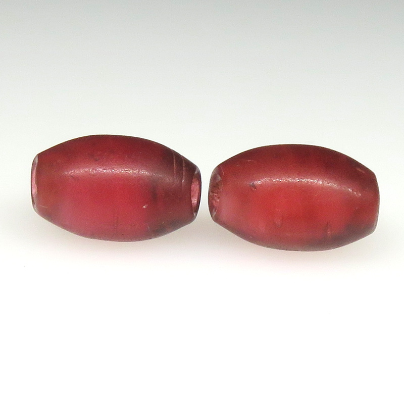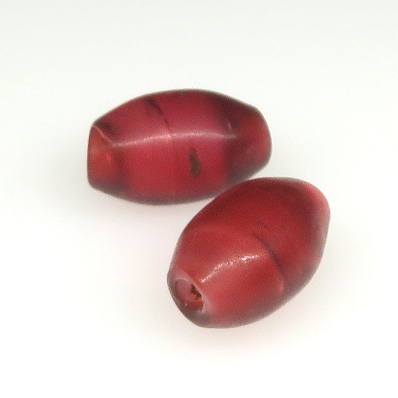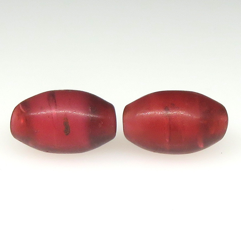 | 説明 | ヴェネチア製アフリカ渡り。 希少な紡錘型のホワイトハーツです。 深いワインレッド。内側の白が透けて美しい。 似たような形・色のものを二個セットにしました。 |