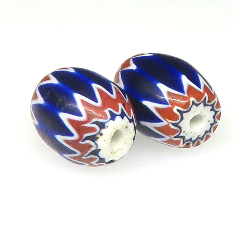 | 説明 | ヴェネチア製、アフリカ渡り。 可愛い小粒のシェブロンです。 丁寧に作られた6層は、小粒ながら見ていてため息が出ます。 似たようなデザイン・サイズのもの2個セットです。 |