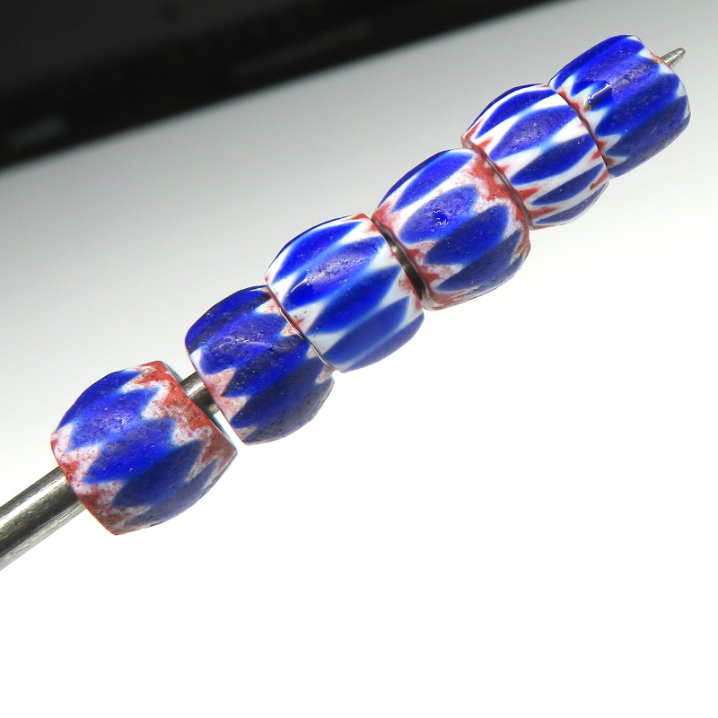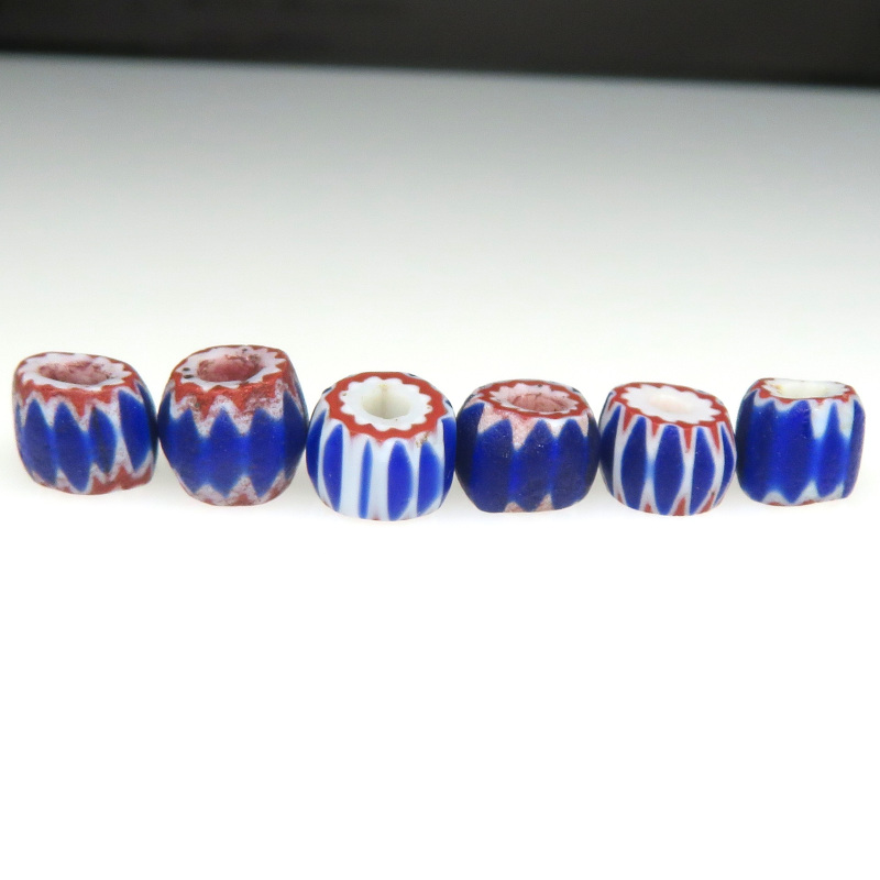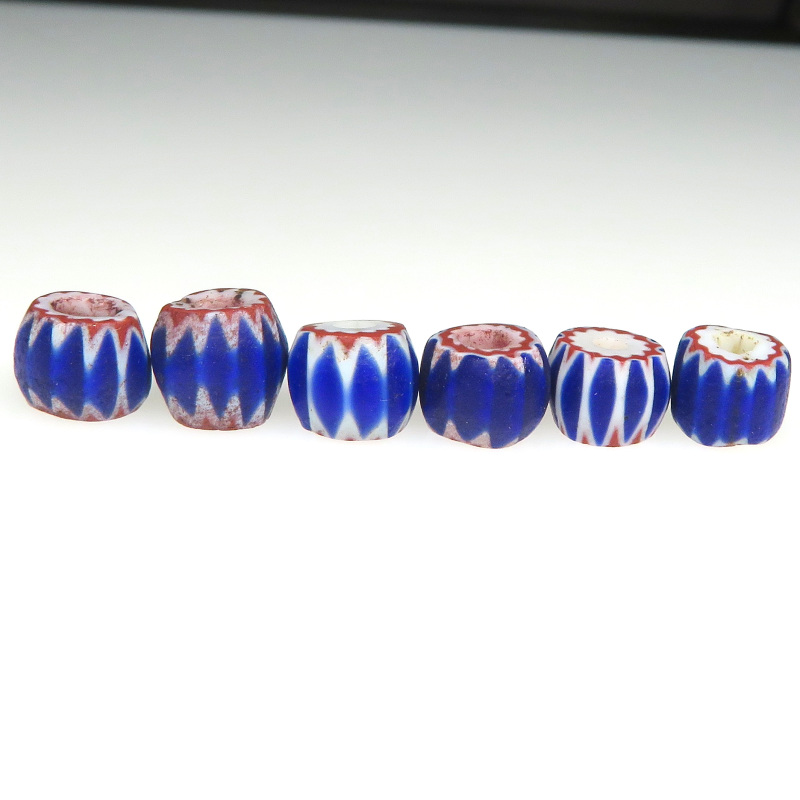| 説明 | ヴェネチア製、アフリカ渡り。 4層のシェブロンです。6層とはまた違った味わい。 小粒6個セットです。それぞれ個性があって面白い。 |