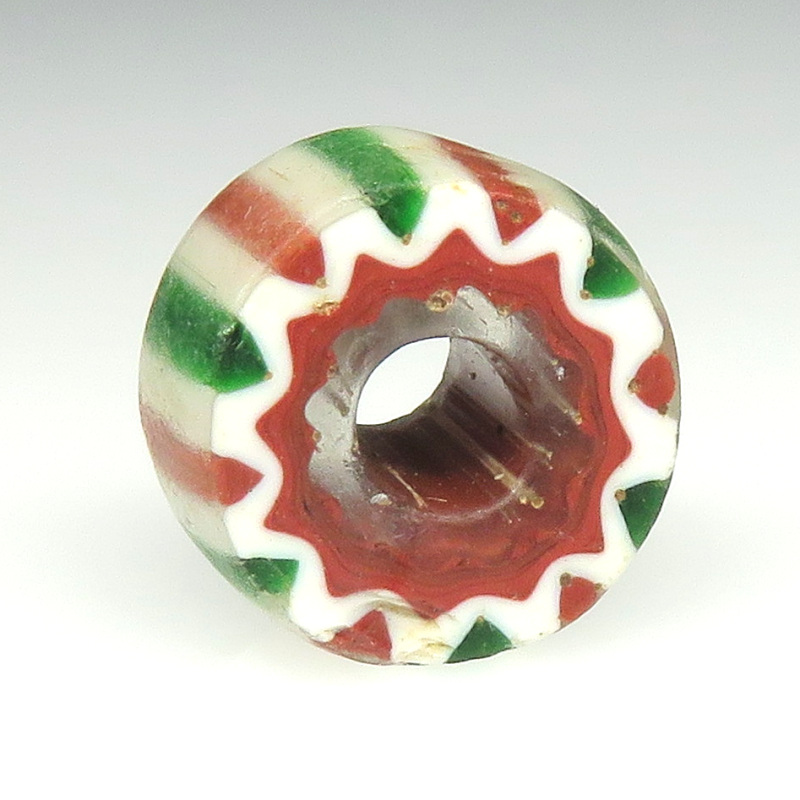 | 説明 | ヴェネチア製アフリカ渡り。 楽しい色合いの4層のシェブロンです。 内側はクリア層。 |
