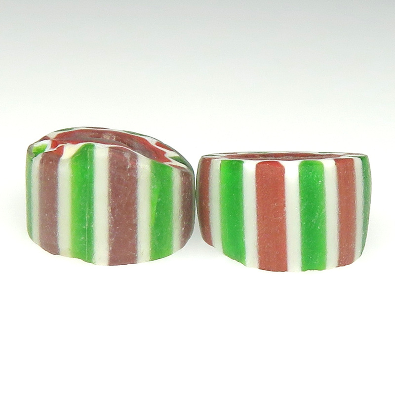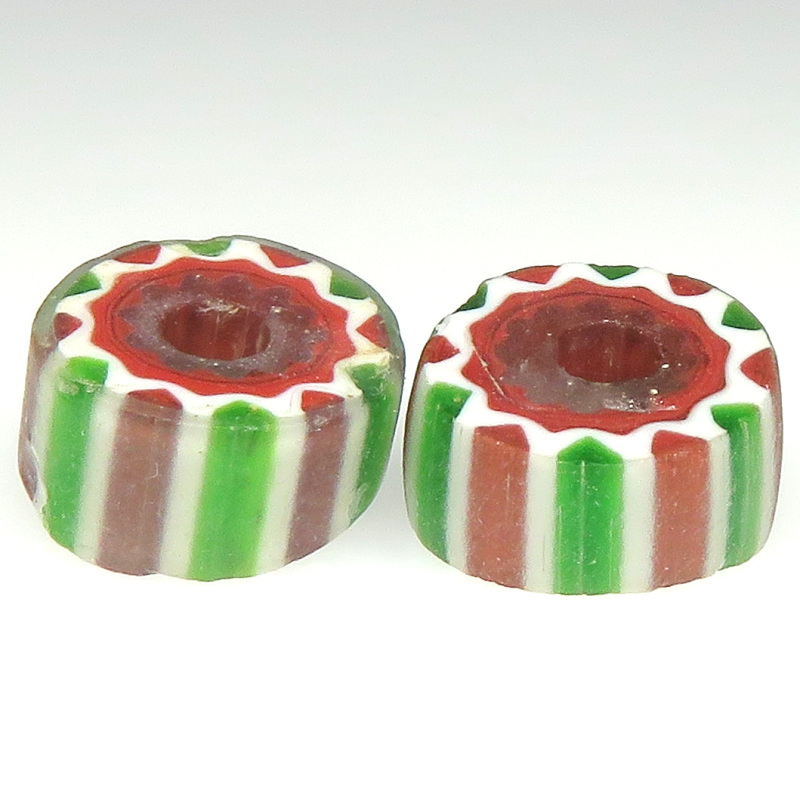 | 説明 | ヴェネチア製アフリカ渡り。 楽しい色合いの4層のシェブロンです。 内側はクリア層。 2個セット。 |