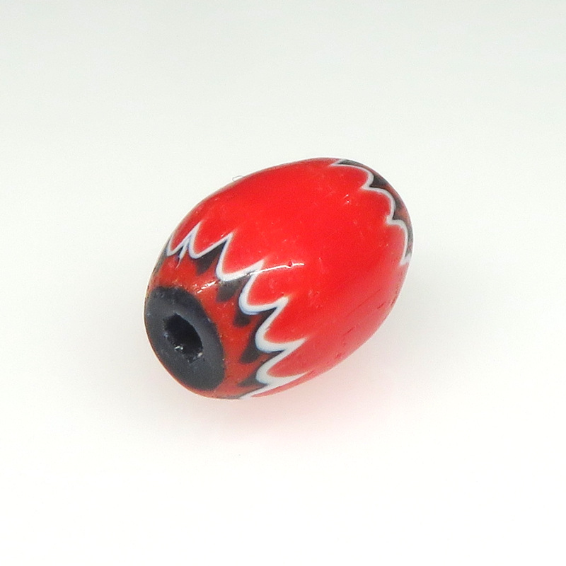 | 説明 | ヴェネチア製、アフリカ渡り。 大変珍しい赤いシェブロン小粒。 表面にツヤのあるタイプ。 |