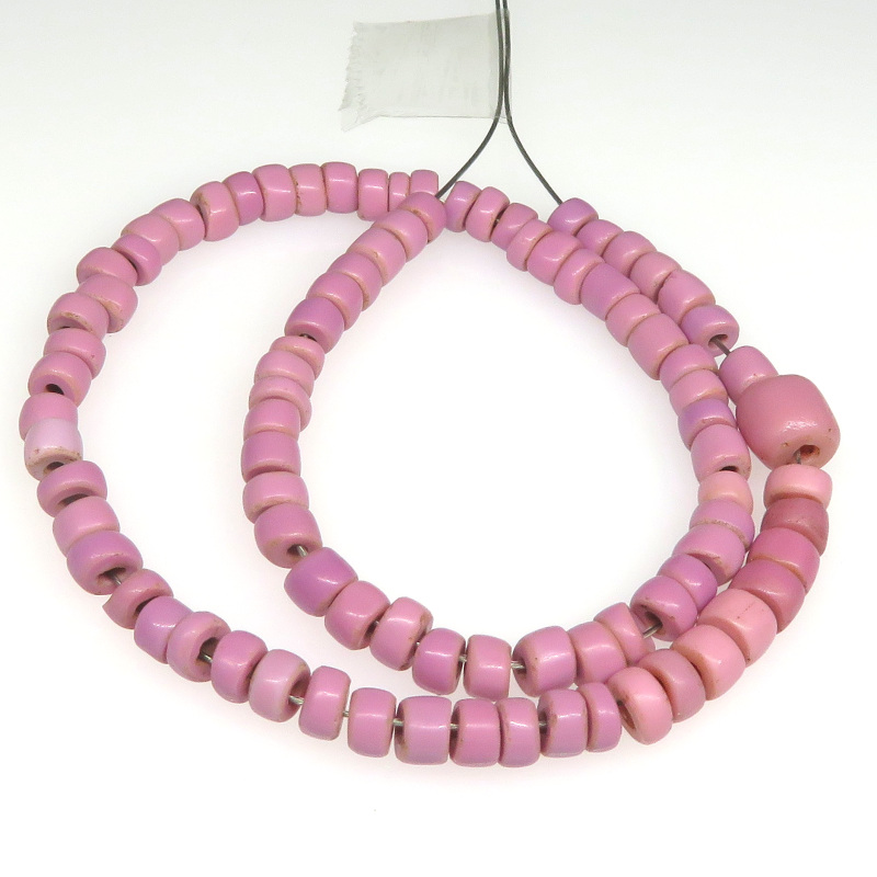 | 説明 | ヴェネチア製アフリカ渡り。 ピンクマサイ(マッサイ)です。 名前の通り、ケニアのマサイ族に愛された愛らしいピンクのビーズです。 最近、入手困難になった質の良い古いタイプ。 ピンク色の微妙な違いが魅力的で、見ていて飽きません。 とても魅力的な一連です。 短連です。 |