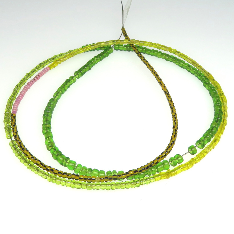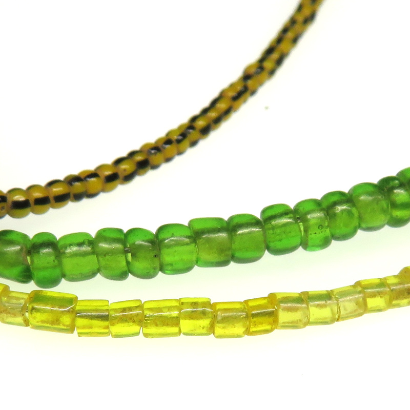 クリアブグリーン2種と極小ピンク、極小カンネッテとチューブ型のクリアイエローのミックス連。