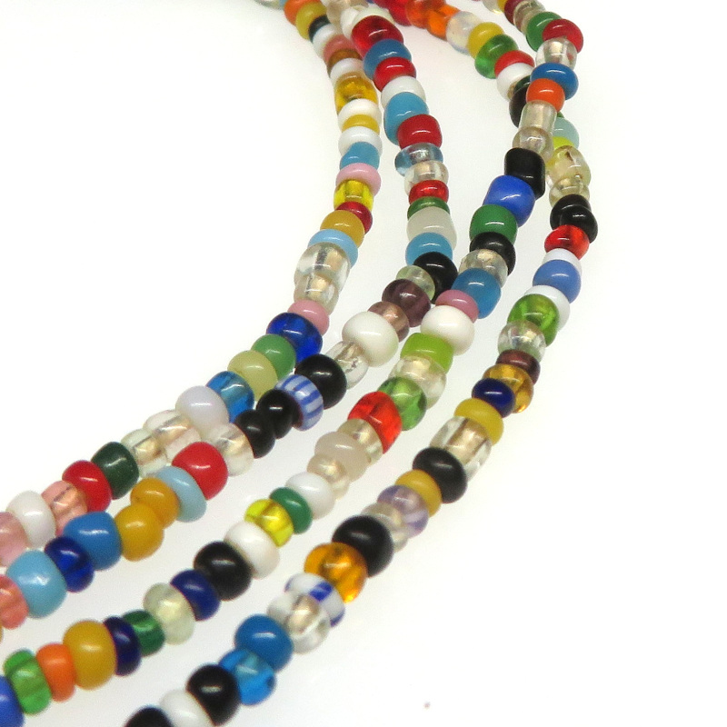 | 説明 | ヴェネチア製アフリカ渡り。 シードビーズ(種のように小さなビーズ)です。 アフリカらしいユニークな色使いの魅力的な極小シード連。 写真よりも実物の方が大分良いです。 |