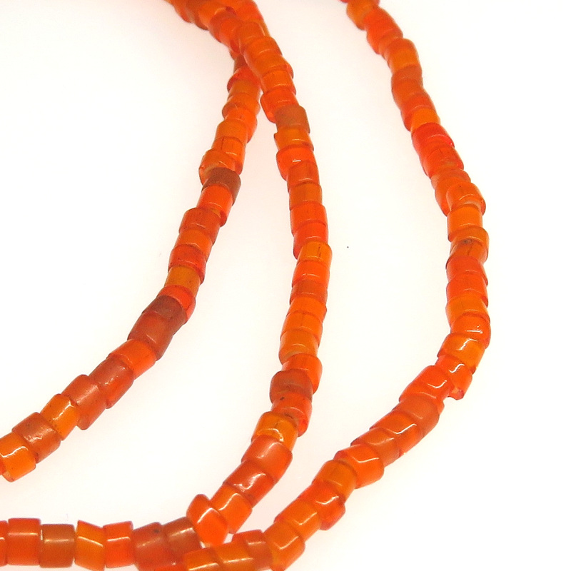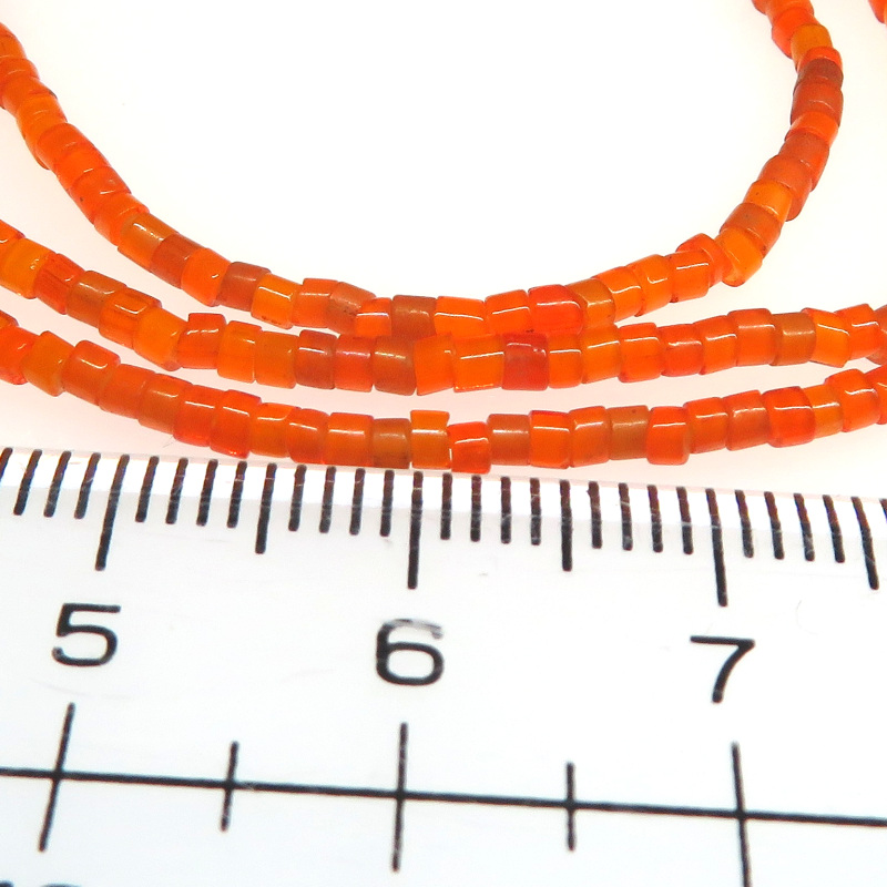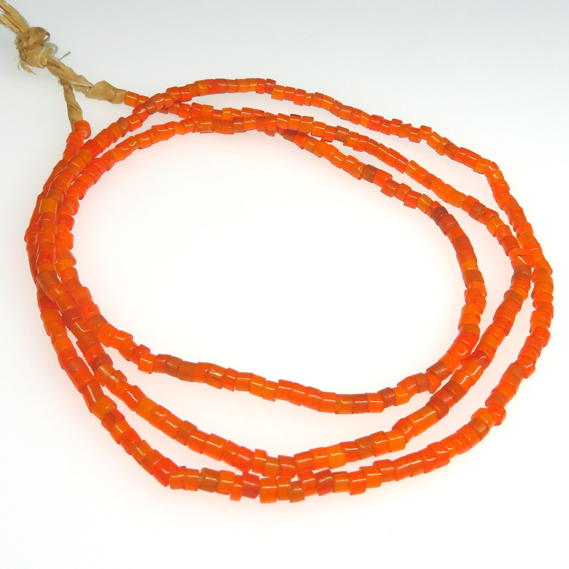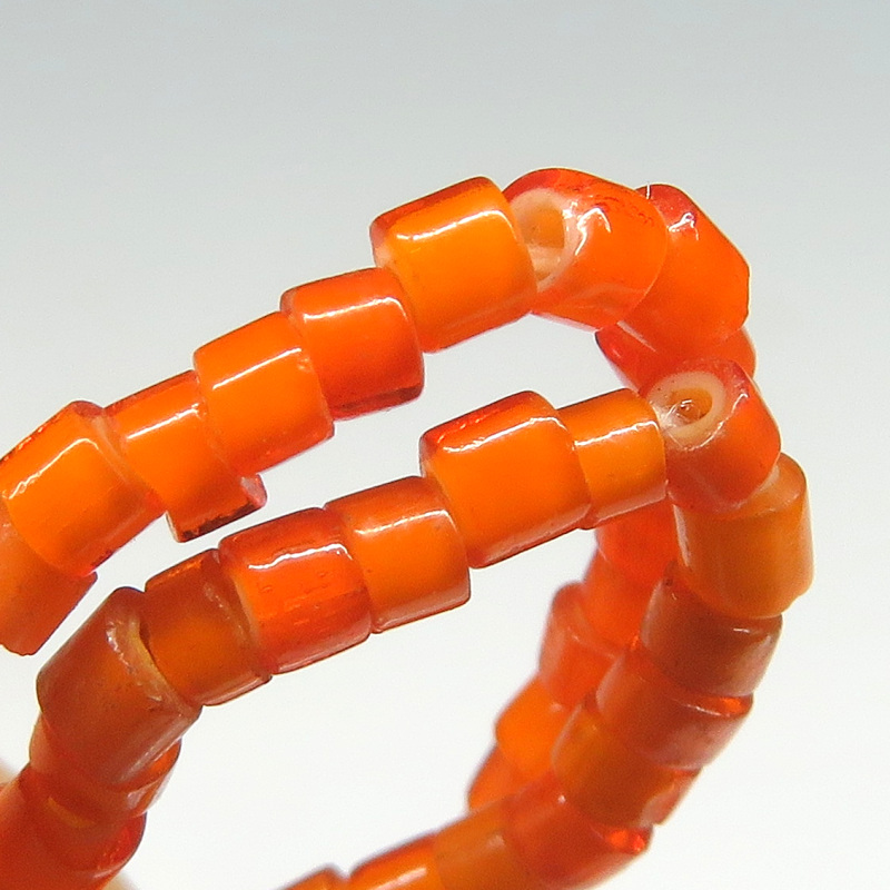 | 説明 | ヴェネチア製アフリカ渡り。 珍しいオレンジ色の極小チューブ型ホワイトハーツの連です。 使い込んで人の脂がなじむと、より美しい色合いになることでしょう。 粒は一粒一粒、色・サイズ・形に個性があります。 |