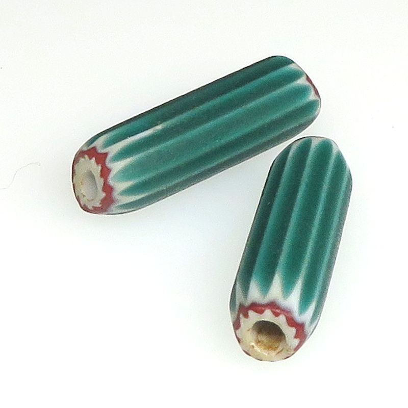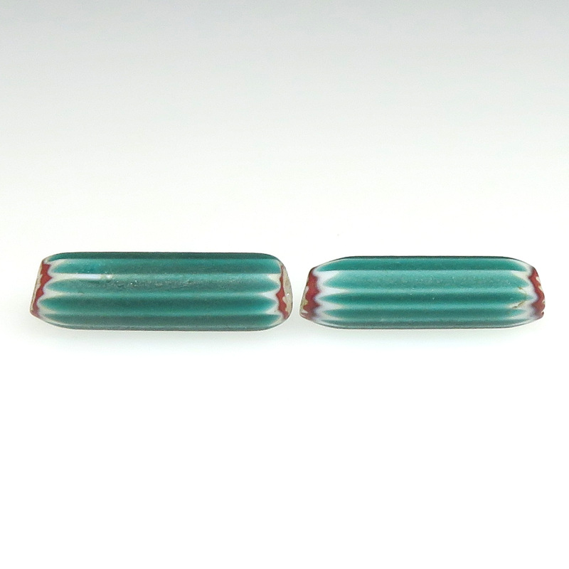 | 説明 | ヴェネチア製アフリカ渡り。 4層のスマートなシェブロンです。 非常にレアなグリーンの細長いタイプ。研磨も丁寧です。 似たようなサイズ・デザインのもの2個セットです。 |