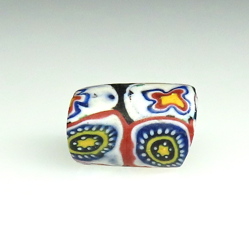 | 説明 | ヴェネチア製アフリカ渡り。 小型のミルフィオリです。 2種類のモチーフが配された希少なミルフィオリ。 |