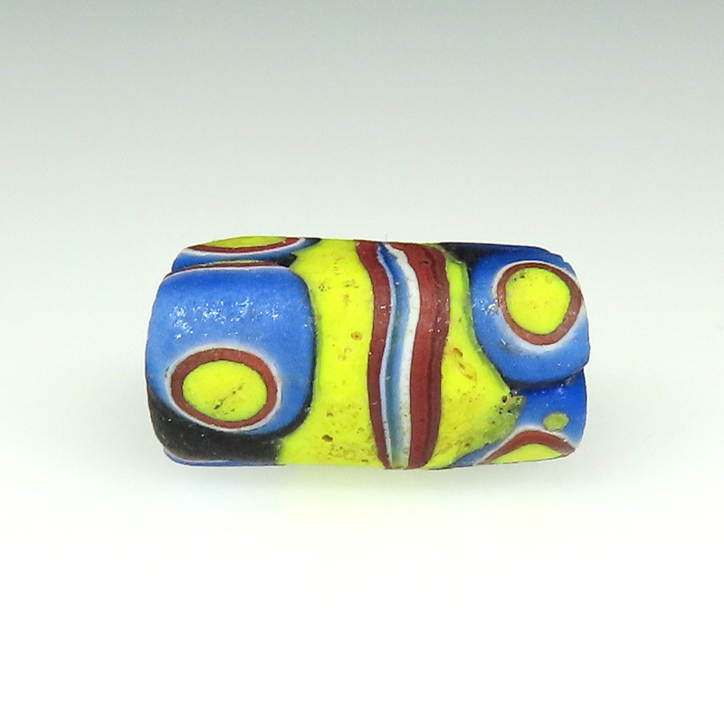 | 説明 | ヴェネチア製アフリカ渡り。 中型のミルフィオリです。 真ん中に帯のようなラインが入って凝ったデザイン。 |