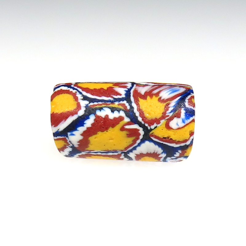| 説明 | ヴェネチア製アフリカ渡り。 中型のミルフィオリです。 composite=合成法によるムッリーネを使ったミルフィオリ。 (詳しくは、「旅するとんぼ玉 p.34) |