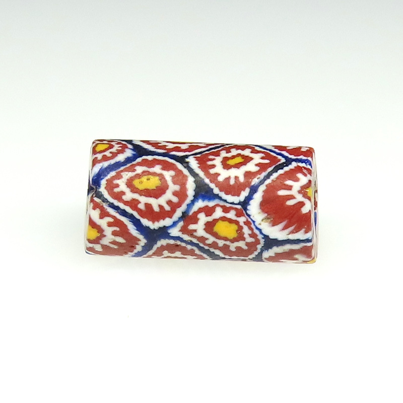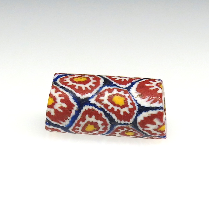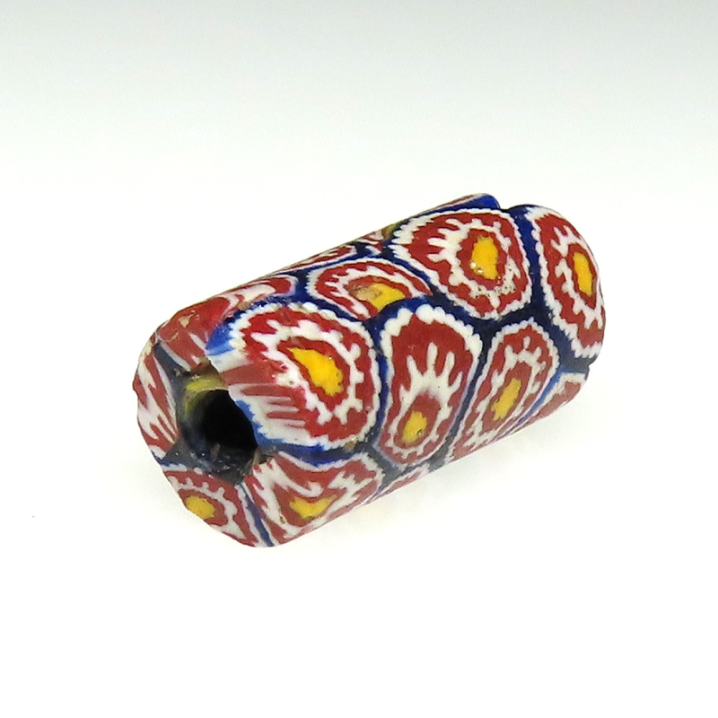 | 説明 | ヴェネチア製アフリカ渡り。 中型のミルフィオリです。 composite=合成法によるムッリーネを使ったミルフィオリ。 (詳しくは、「旅するとんぼ玉 p.34) |