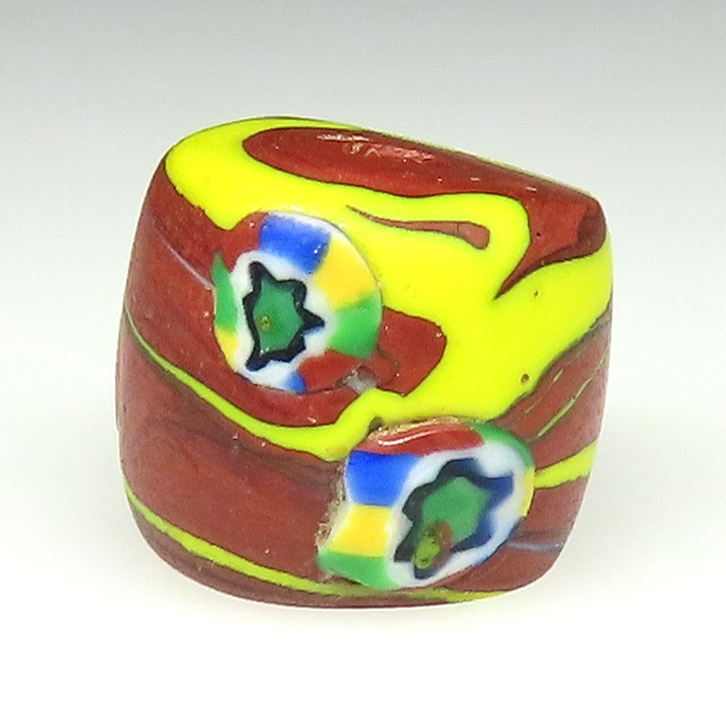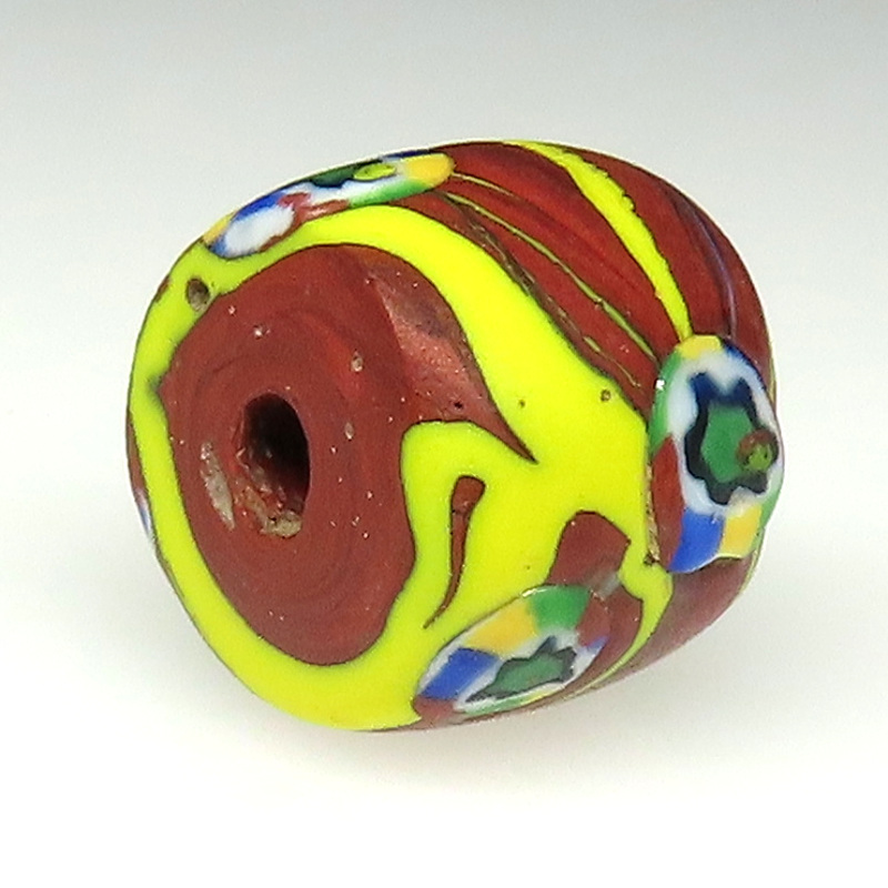 | 説明 | ヴェネチア製アフリカ渡り。 樽型のミルフィオリです。 素朴なアースカラーが魅力の大型。 |