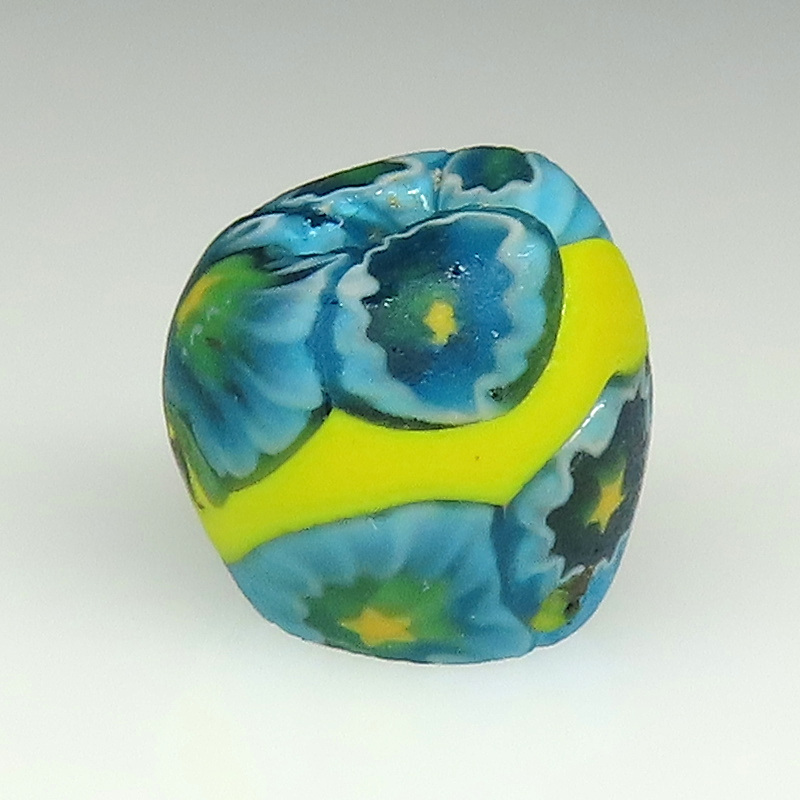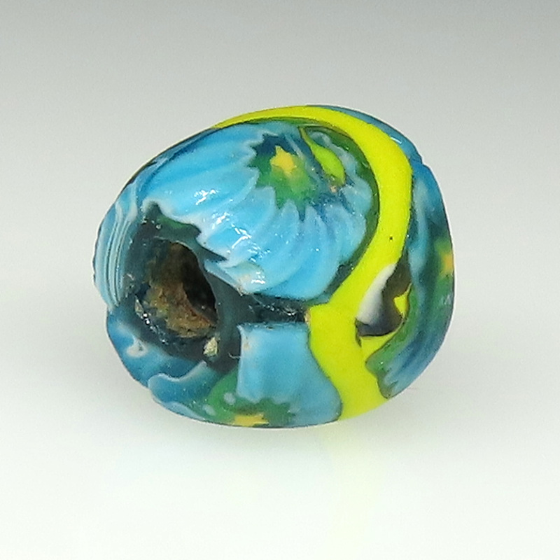 | 説明 | ヴェネチア製アフリカ渡り。 樽型のミルフィオリです。 希少。ブルーがとても印象的です。 上下を少し斜めにカットしたタイプです。 |