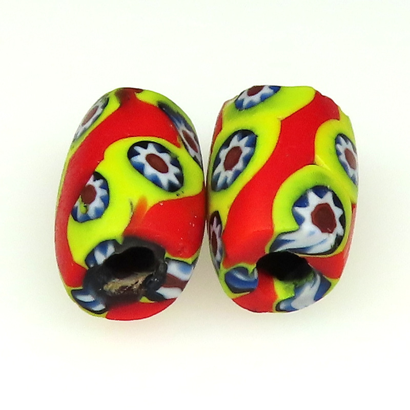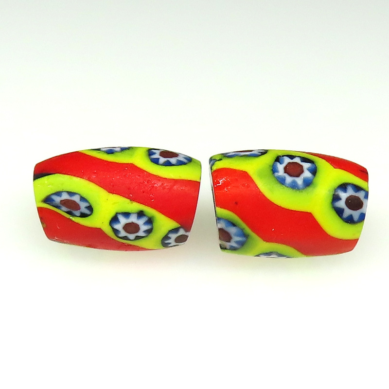 | 説明 | ヴェネチア製アフリカ渡り。 オーバル型のミルフィオリです。 愛らしいもの2個セットです。 |