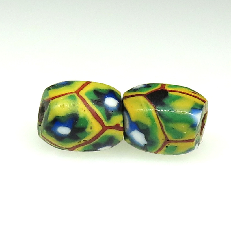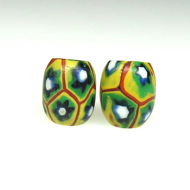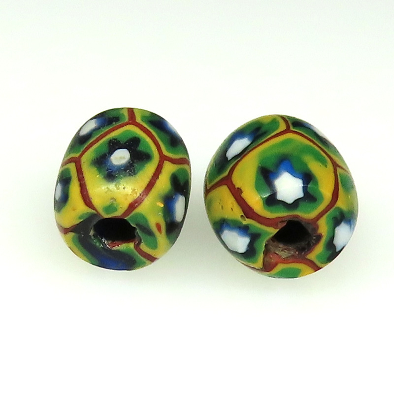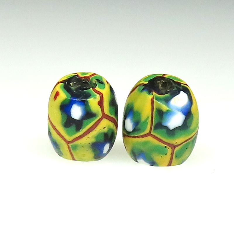 | 説明 | ヴェネチア製アフリカ渡り。 オーバル型のミルフィオリです。 小型で丸っこいもの2個セットです。 |