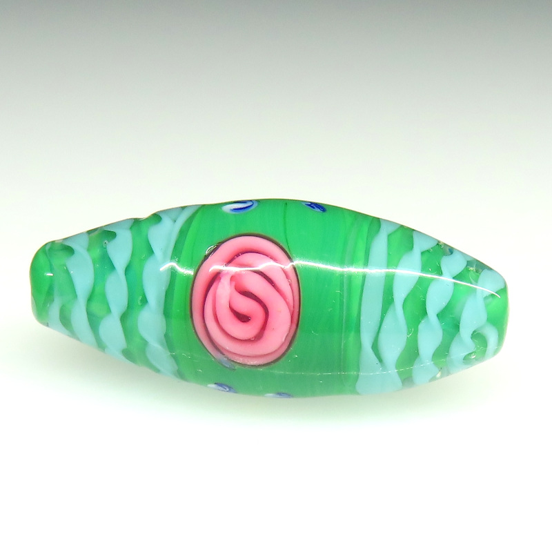 | 説明 | ヴェネチア製。 美しいヴィンテージガラスビーズです。 技巧を凝らしたレースのラインと、愛らしい薔薇と忘れな草をバーナーワークで丁寧に描いています。