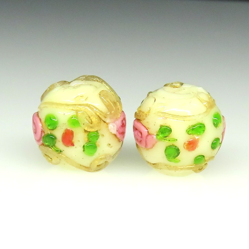 ボディーはミルキーホワイト、薔薇と忘れな草の装飾が豪華です。 |