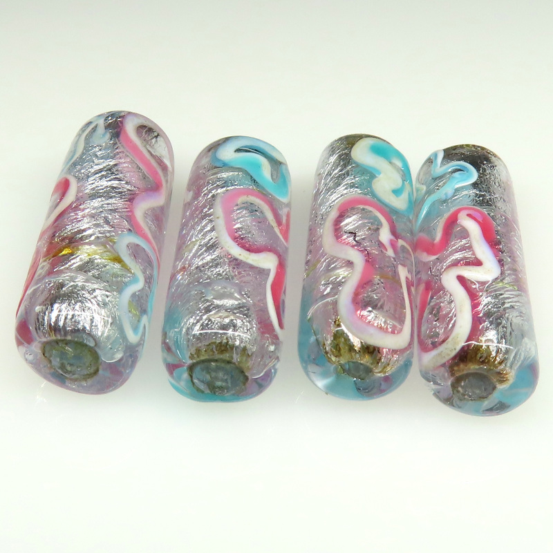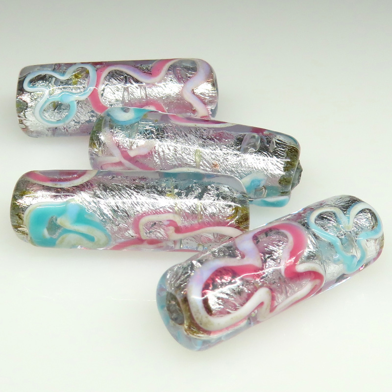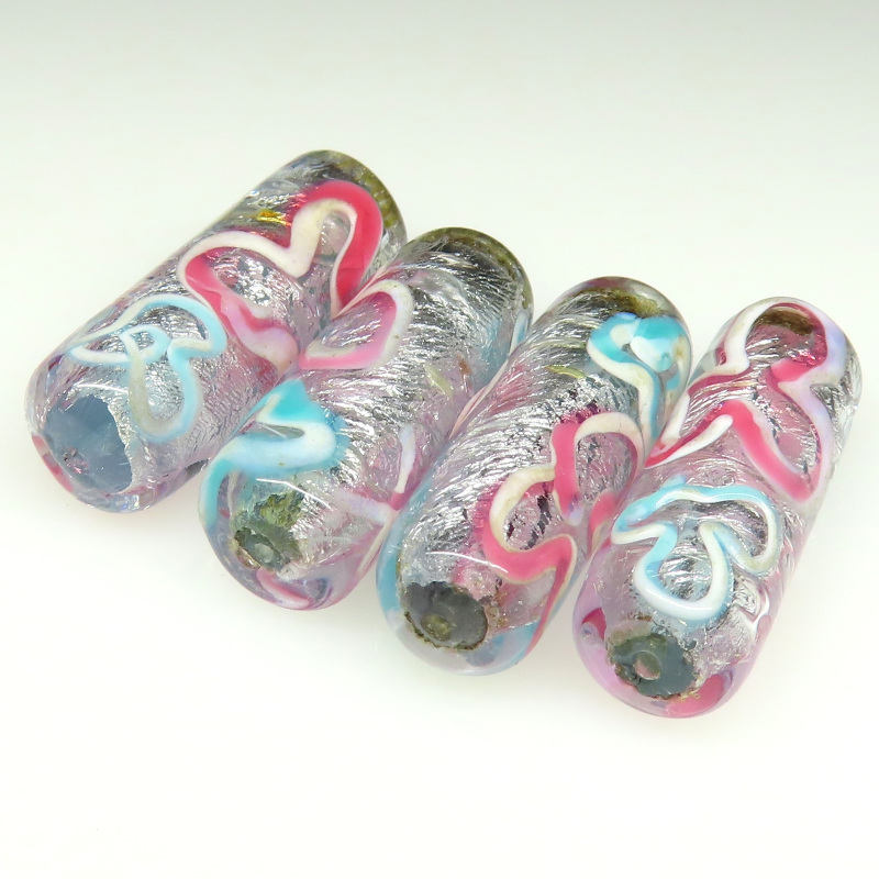 | 説明 | ヴェネチア製。 美しいヴィンテージガラスビーズです。 銀箔をガラスで挟み込んだシルバーフォイルという技法で作られており豪華です。 4個セット。 |
