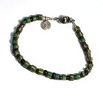 | 説明 | 1800年代後期〜1900年代初頭のヴェネチア製希少な緑のシェブロンタイプのカンネッテと格調高い紫色のクリアシードビーズで作ったオリジナルブレスレットです。 カレンシルバーのチャームとビーズを根元に配しました。 留め具はパチンとはめるタイプの新型フックです。 |